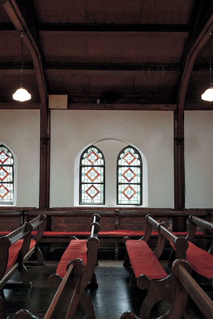 ずっと気になっている建物があった。京都御苑のそばに建つ、聖アグネス教会。赤レンガの四角形にキュートな丸窓付き。今も現役? 内側はどんなだろう? 好奇心がむくむく。だから一般に開放されるイベントがあると知ったときは小躍りした。それが『京都モダン建築祭』である。