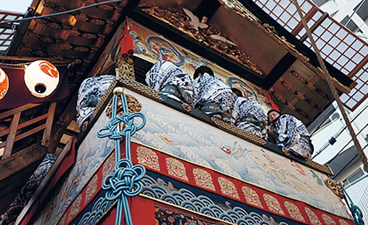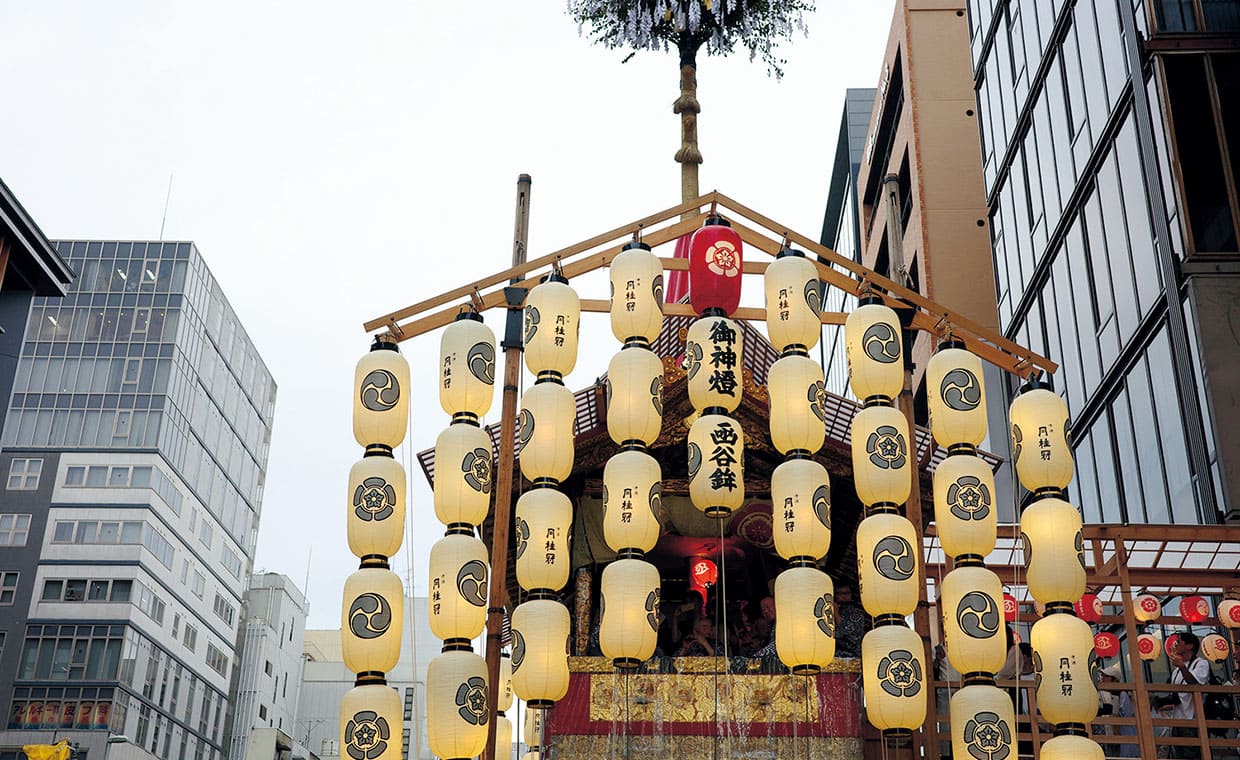 知人曰く、祇園祭は疫病を鎮めるため、八坂神社の神様を神輿で担ぎ出したのが始まり。だから、神様を乗せた3基の神輿が八坂神社を出発し、町内を巡って御旅所(おたびしょ)へ安置される「神幸祭(しんこうさい)」、1週間後にまた町内を巡り八坂神社へ還る「還幸祭(かんこうさい)」という神事が真髄なのだという。ちなみに山鉾は、神輿が通る道を浄める役割を果たす。たとえば前祭の17日には、23基の山鉾が登場するけれど、先頭はいつも長刀鉾(なぎなたほこ/大長刀を鉾頭に付けている)と決まっていて、「長刀で結界を切る」のだとか。へー!
