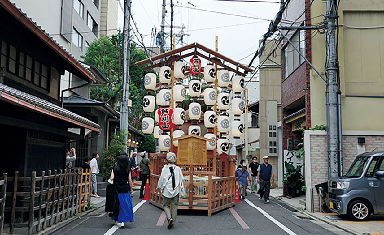 宵山の翌日、山鉾巡行の日は夕刻に始まる神輿見物へ。薄暗がりのなか担がれる神輿は勇ましく、神々しい。「ホイットホイット」という担ぎ手の掛け声と熱気を前に、なるほど、これが祇園祭か! と、鳥肌ふたたび。神輿3基はそれぞれルートが異なるけれど、神幸祭(17日)の見学におすすめなのは、3基を時間差でコンプリートできる三条大橋の上。混んでいないし、夜風が通るのもいい。