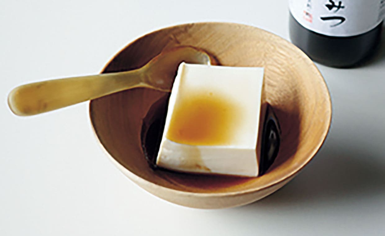気になるのはその食べかた。私はもっぱら冷奴だけれど、森井さんは湯豆腐でもよく食べるとか。「火を通すと豆腐がゆるんで、また違う食感になる」とのことで、さっそく試してみたら、たしかに! 大豆の深い香りと甘みはそのままに、口当たりは、つるり、ぷるるっ。1╱2丁を秒で完食。食後は、森井さん推しの「冷奴の黒蜜がけ」に挑戦。水を切った嵯峨豆腐に黒蜜をかけると、台湾の豆花みたいな甘美なスイーツに変身。どちらもカチっとした木綿豆腐では食感が悪く、やわい絹ごし豆腐ではものたりない。その中間のような豆腐だからこそ叶う味だ。