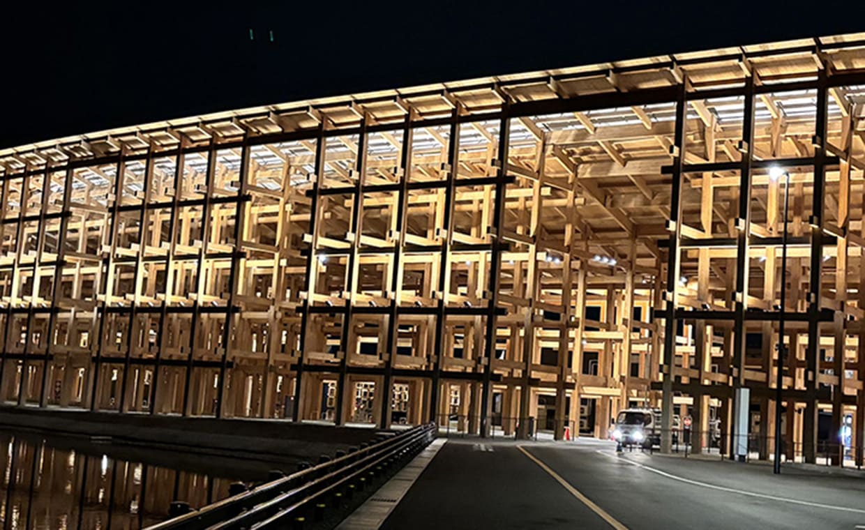 ライトアップされた大屋根リングは、息を呑む迫力。