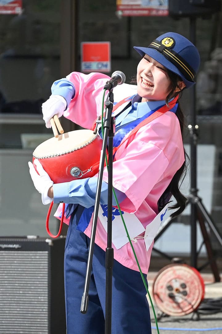 はっぴちゃん。は、基本的に「めでたい」と「太鼓」をかけた“めで太鼓”というネタで太鼓を使ったり、