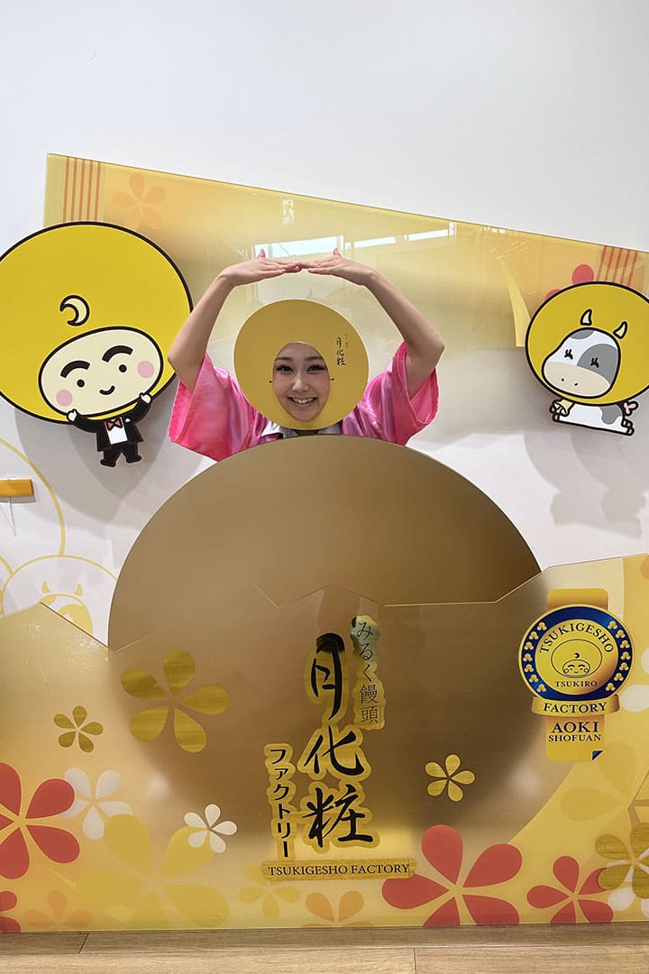 焼き立てのみるく饅頭月化粧を試食できたりするんだそう。