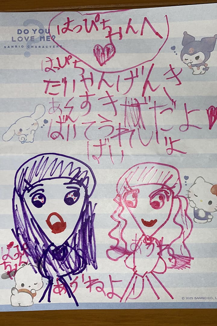 「はっぴちゃん。のファンなのー♡似顔絵書いてきたのでもらってください!」と