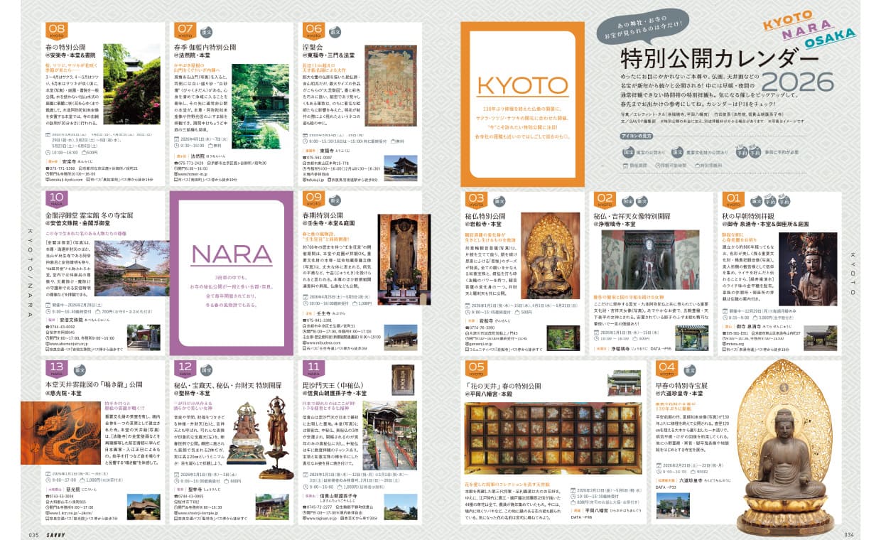 めったにお目にかかれないご本尊や、仏画、天井画などの名宝が新年から続々と公開される! 中には早朝・夜間の通常拝観できない時間帯の特別拝観も。気になる催しをピックアップして、春先までお出かけの参考にしてね。