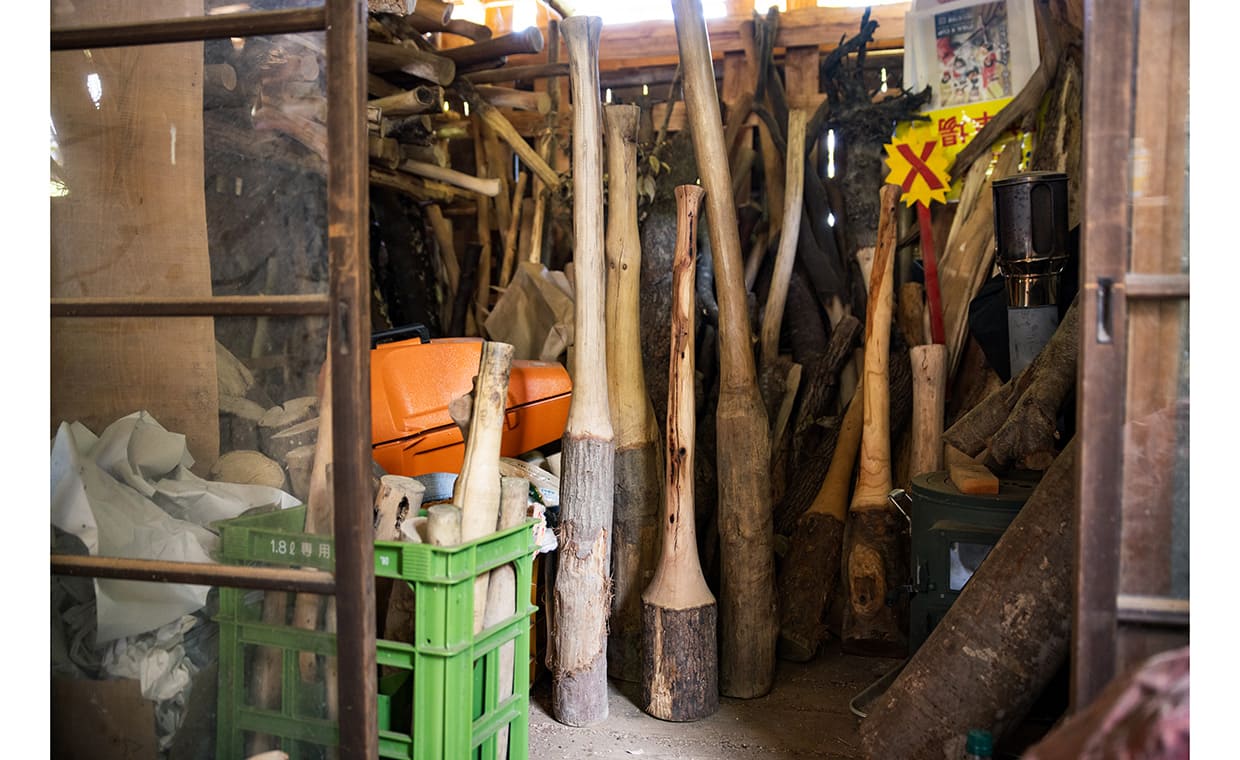 「普段から木製品に囲まれているのに、それが山に生えていた木だという意識が希薄なんだと思う。こん棒って持ち手を削ってるだけで、残りの打撃部はもとの木の姿のまま。何も削られてない丸太だと面白がれないのに、こん棒になった途端に面白くなる。人間の意識って興味深いなと。ただ、第1回は歴史上初の『棍棒展』だったから物珍しさで売れたところもあって、今回はまた違うことも見せていかなあかんとは思ってます」