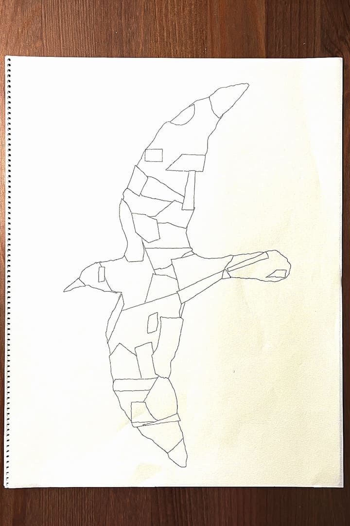 こうやって線にすると、ここの貼り方はもう少し角度をつけた方が良かったなとか、重ねる順番を入れ替えたいなとか、直したいところがたくさん見つかりました。