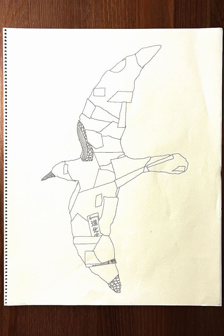 なので、完璧な貼り絵を作るなら、貼り絵のパーツを配置してから一度線画にして、配置が美しいかどうかを確認してからまた貼り絵に戻り、微調整をすれば良いなと思いました。