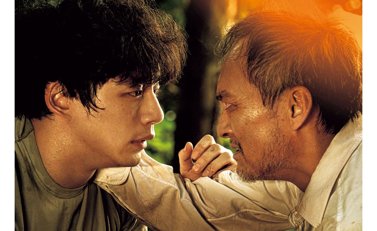 主人公を演じるのは坂口健太郎。将棋への情熱だけを頼りに過酷な人生を生き抜いてきた青年を、存在感のしっかりとした厚みのある人間像で造形している。青年には、父親的存在の男が3人いて、一人は青年を虐待し続けてきた男。一人は少年時代に将棋を教えてくれて、愛情をもって接してくれた人。そしてもう一人が“真剣師”と呼ばれる、賭け将棋の棋士で、青年に生きがいと絶望を与え続ける男。この3番目の、将棋指しとしての力量は最高、人間としての性質は最低という男を名優・渡辺 謙が演じ、さすがの迫力で作品全体を引き締めている。物語の芯を貫いているのが、男たちが見せる執念とも言える将棋への熱情で、渡辺 謙演じる真剣師に対抗しうる相手として登場する人物を柄本 明が演じており、二人の死闘が物語前半のハイライトになっている。一方、後半のハイライトは、坂口と渡辺のいわば子弟対決で、坂口が渡辺にも、また、柄本の芝居と比べても一歩も引かない熱演で見応えがある。そして、芯を貫くのが将棋なら、物語の底をずっと流れるのが主人公の背負った過酷な運命で、それを、二人の刑事が少しずつ明らかにしていく構成となっている。二人を演じるのは佐々木蔵之介と高杉真宙。ベテランと新米のコンビになっていて、そのキャラクターの在りようから、多くの人が、松本清張の原作を野村芳太郎監督が映画化した名作『砂の器』(1974年)に登場する、丹波哲郎と森田健作が演じた刑事コンビを想起すると思う。さらに、物語の根底にあるのが、主人公の宿命であるのも『砂の器』に通じている。本作の脚本も書いた熊澤尚人監督には、『砂の器』への意識がきっとあったと思う。そういえば熊澤監督の過去作『ユリゴコロ』(2017年)も、殺人を犯してしまうヒロインの血を受け継いだ青年が自らの宿命を乗り越えようとする物語だった。熊澤監督には恋愛映画など他ジャンルの作品もあるので、同一テーマをずっと追い続けているというわけではないけれど、宿命に打ち勝って懸命に生きようとする人間を描くのに強いこだわりがあることは間違いなく、宿命をテーマとした作品の金字塔的存在である『砂の器』へのオマージュと、さらに映画として挑んでみたい、という気持ちがあったのではないだろうか。