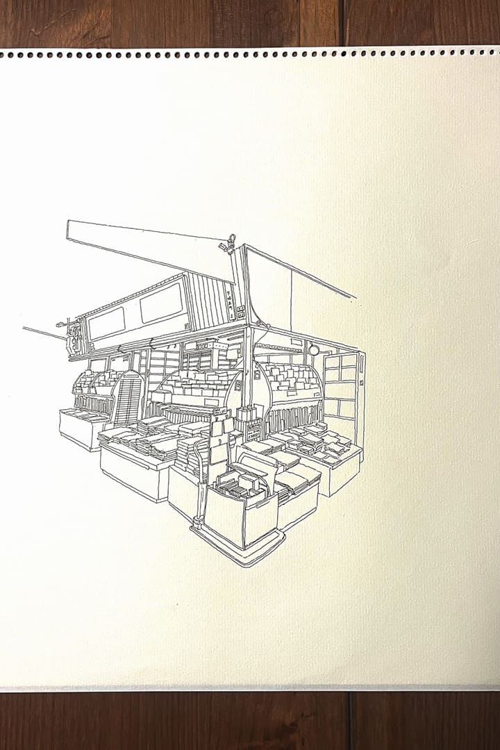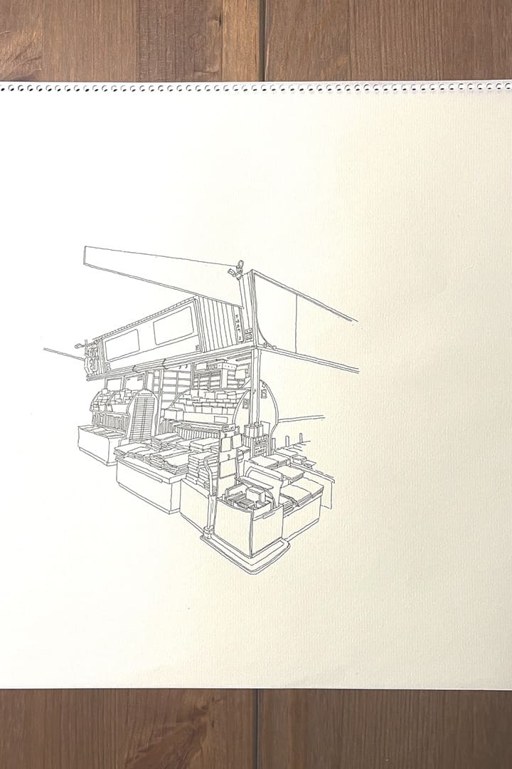 大阪在住、雑誌やウエブなどで活躍中のイラストレーター。風景画をはじめ、超絶細密なタッチの作風が特徴。線の質感にこだわり、作品はすべて一発書き! 制作は、生命保険の粗品のスヌーピーのコップで白湯を飲みながら。また、街中でスケッチすることも。もし、見かけたらぜひ声をかけてください。