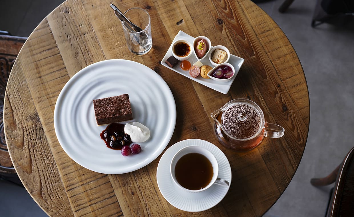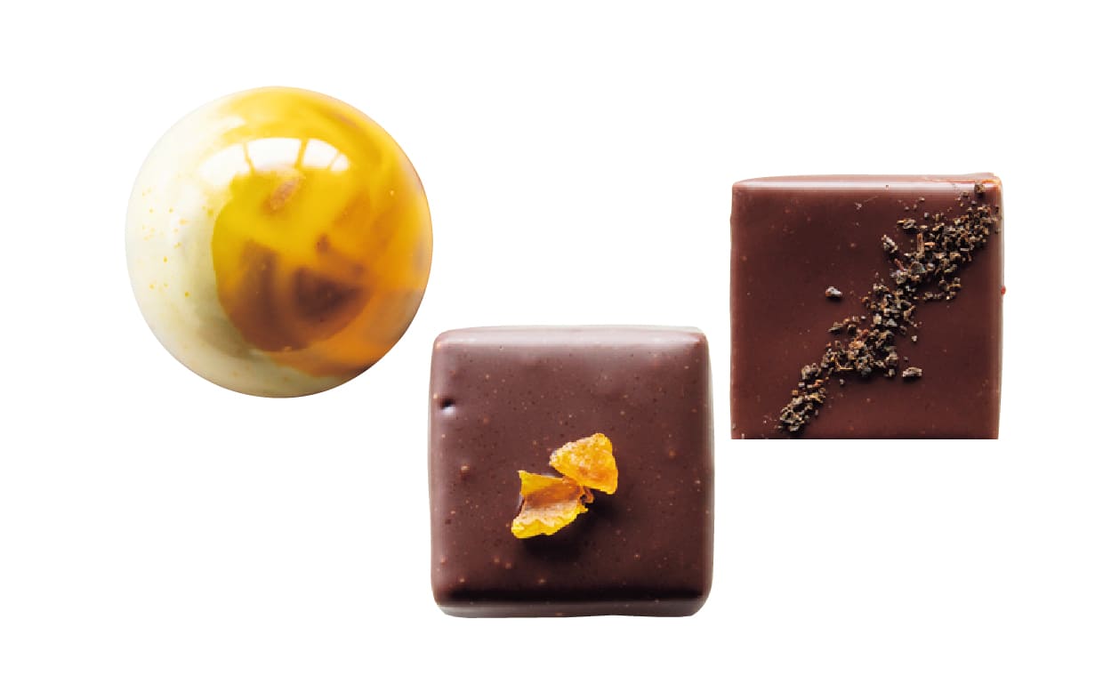 はかなく口溶ける、香り高いプチガトーなどで人気の京都・四条[Patisserie.S]の新展開は、チョコレートと紅茶を楽しむ店。シェフを務める武友瑶子さんは、本店で経験を積んだ後、東京のビーントゥバー専門店でショコラティエとしても腕も磨いた。「果物のフレッシュ感を生かし、アルコール分は控えるなど、親しみやすいチョコレート」をテーマに掲げる武友さん。手作りするボンボンショコラは常時20種近くあり、1個から購入OK。テイクアウトはもちろん、大きめのカップに注がれる紅茶をお供に店内で楽しむこともできる。生クリームとスパイシーなジャムを添えたガトーショコラは、プティフールなどが付く大充実のセットに。軽食としても重宝しそう!