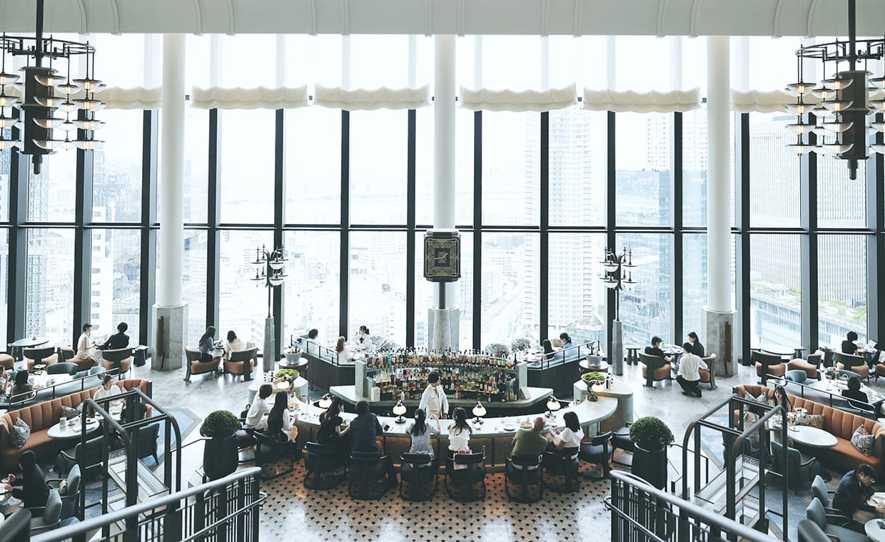28〜29階にまたがる、天井高9mの開放的な空間に広がるラウンジ&バー。大阪を一望する絶景と共に、最高級の食材を使用し、伝統的な技法にモダンなアレンジを加えた軽食やアフタヌーンティー、ワールドクラスのバーテンダーによるカクテルも楽しめる。