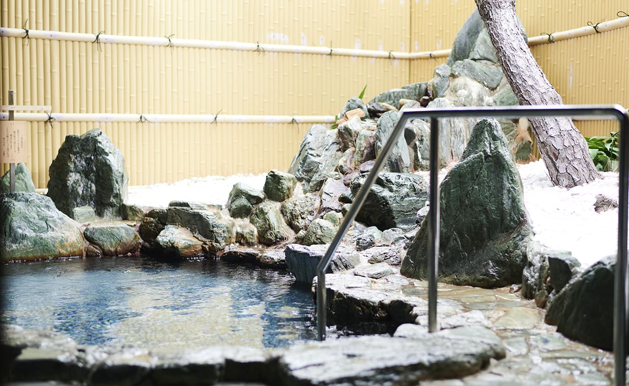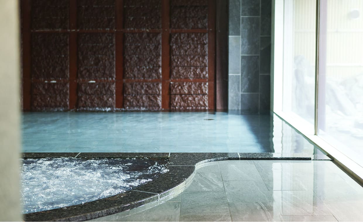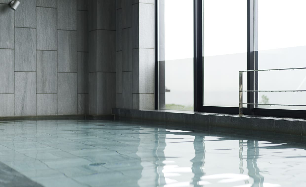 内湯に露天風呂、サウナまでそろう広々とした大浴場のほか、別棟には展望大浴場も用意。近くから引く洲本温泉には「うるおいの湯」の名が付き、お風呂上がりも肌がしっとり。