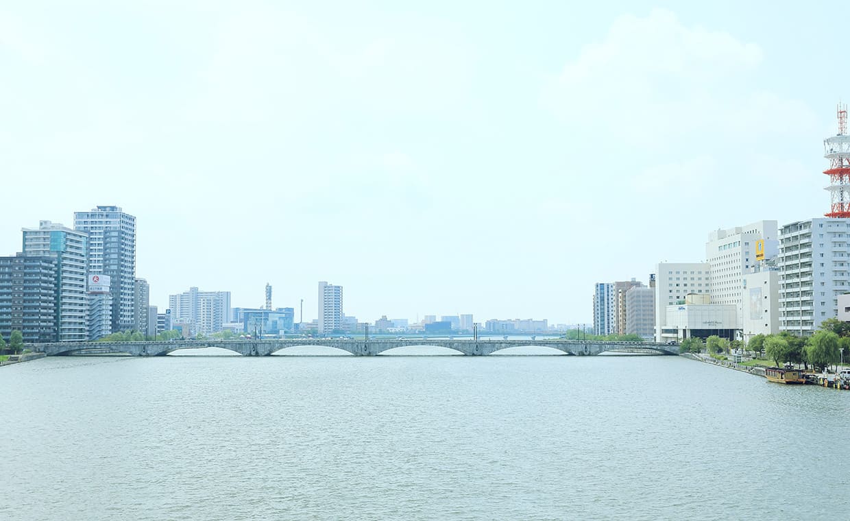 2006年、橋としては東京の日本橋に次ぐ二番目に重要文化財として指定された街のシンボル。1877年竣工の初代は木製。現在の橋は1929年に架け替えられた三代目になる。全長306.9m、頑丈な石造りと美しいアーチが特徴で、1964年の新潟地震も耐え抜いた。
