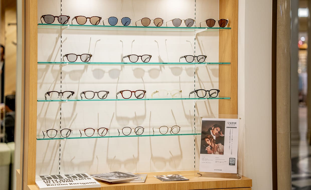 1972年、日本初のファッションアイウェアブランドとして誕生し、熟練のクラフトマンシップと洗練されたデザインで新しい価値を創造してきたEYEVAN。そのセレクトショップとなる[SeeP EYEVAN]の宝塚店は、国内外で高い評価のEYEVANやEYEVAN 7285のほか、ミニマルで軽いe_BY EYEVANなど豊富にラインナップ。朝美さんや夢白さんが着用したフレームが並ぶ“タカラヅカコーナー”も充実し、舞台の余韻に浸れるような空間を演出しています。二人のサイネージやサイン入りパネルも飾られているので、観劇の際、気軽に立ち寄って。