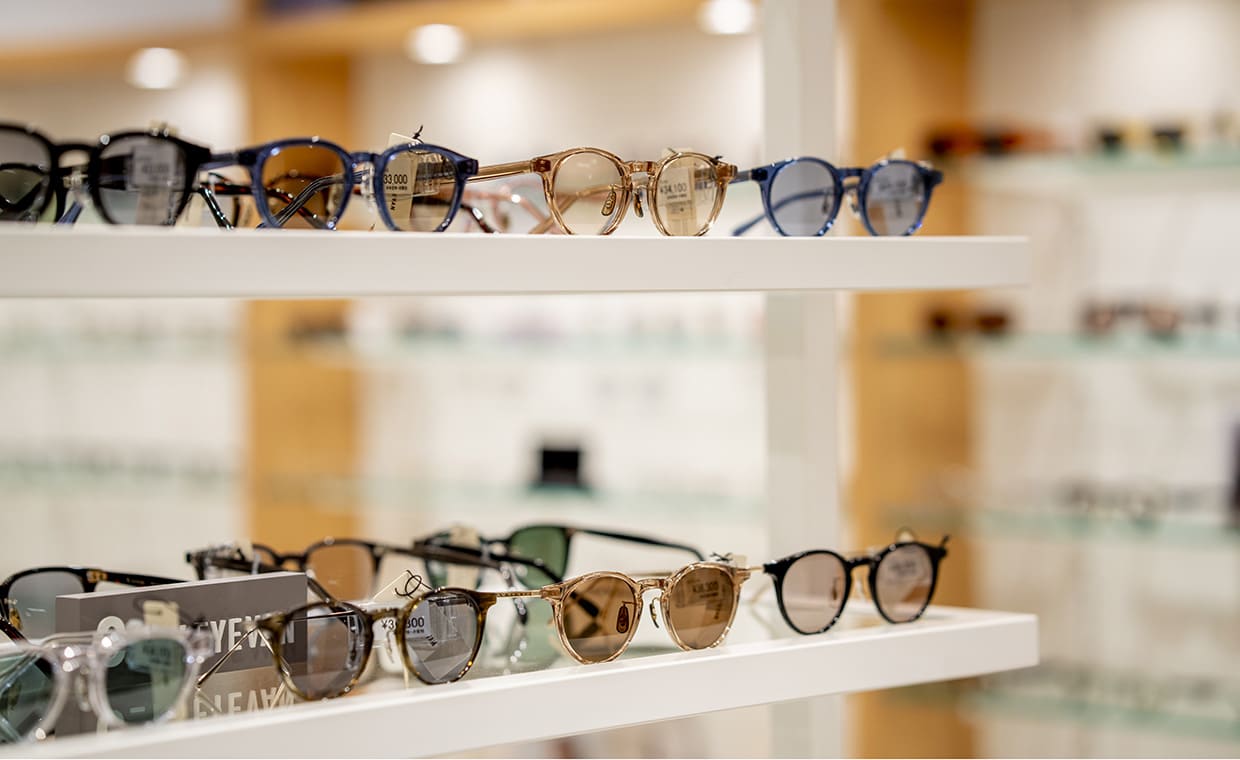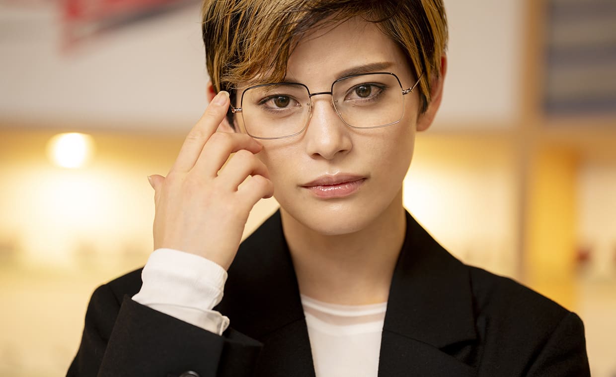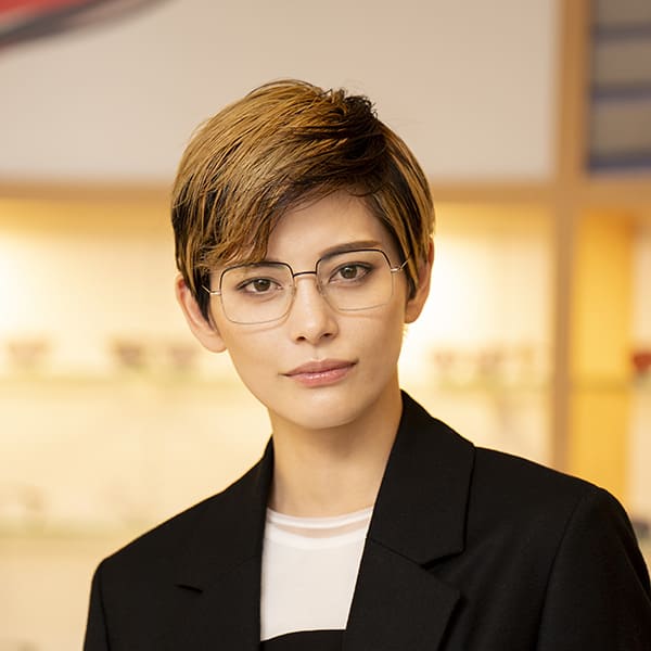 朝美 絢(以下朝美) たくさんのきれいなメガネが並び、とても洗練された空間ですてきです。宝塚の街なかにこのようなお店ができて、うれしいです。