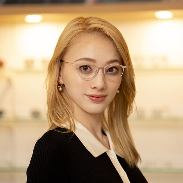 夢白 フレームの色がゴールドだったら、ゴールドのピアスをつけたりと、アクセサリーとの組み合わせも考えます。