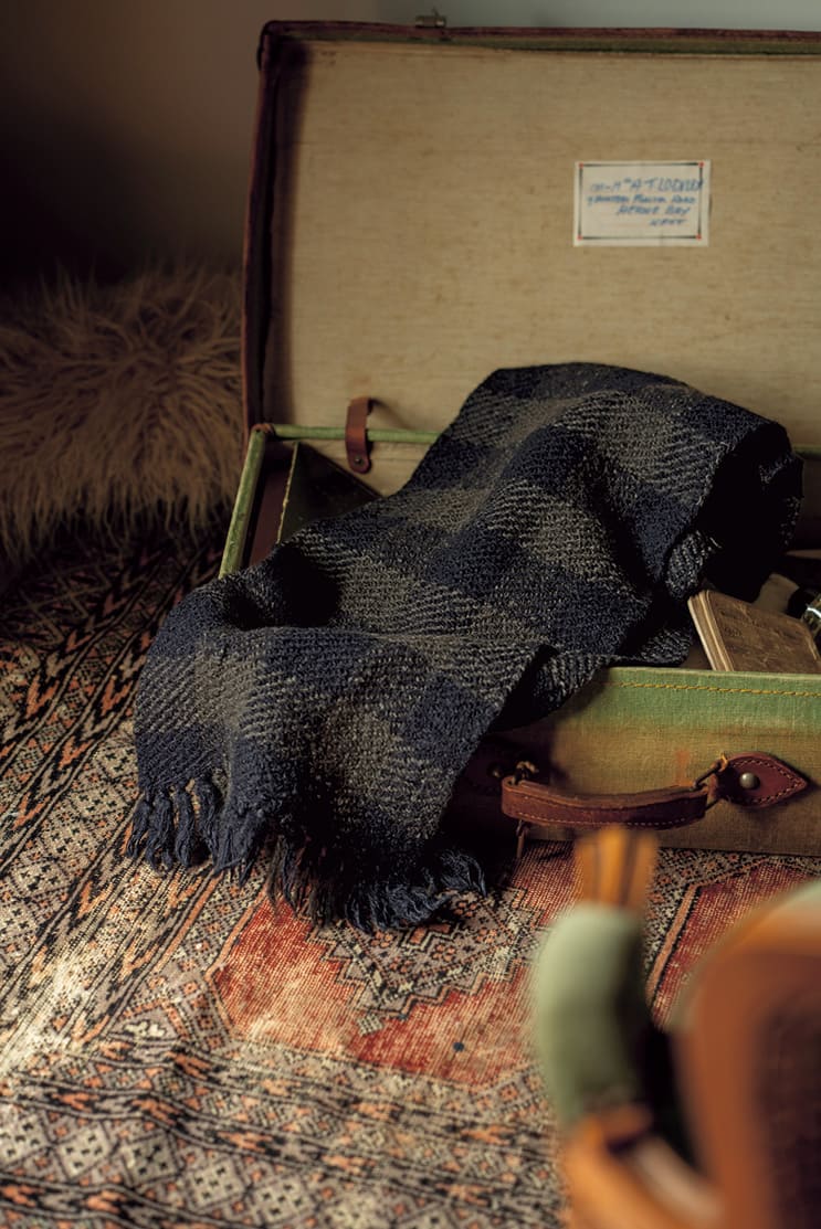 スラブ感のあるウールをぜいたくに使った、ざっくりと温かみのある表情に仕上げたスカーフ。落ち着いた配色のブロックチェックが冬の装いに映える。CHUNKY WOOL CHECK SCARF 24,970円(エムエイチエル.)/4F MHL.(エムエイチエル)