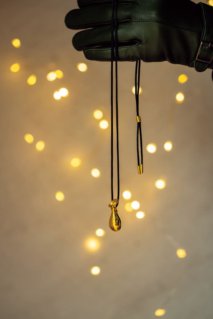 有機的なシルエットのオリジナルモチーフが、まるでアートピースのような存在感を演出。ひもの長さは背丈や着こなしに合わせて調整可。水差しモチーフネックレス12,100円(エモエレ)/3F ADAM ET ROPÉ(アダム エ ロペ)