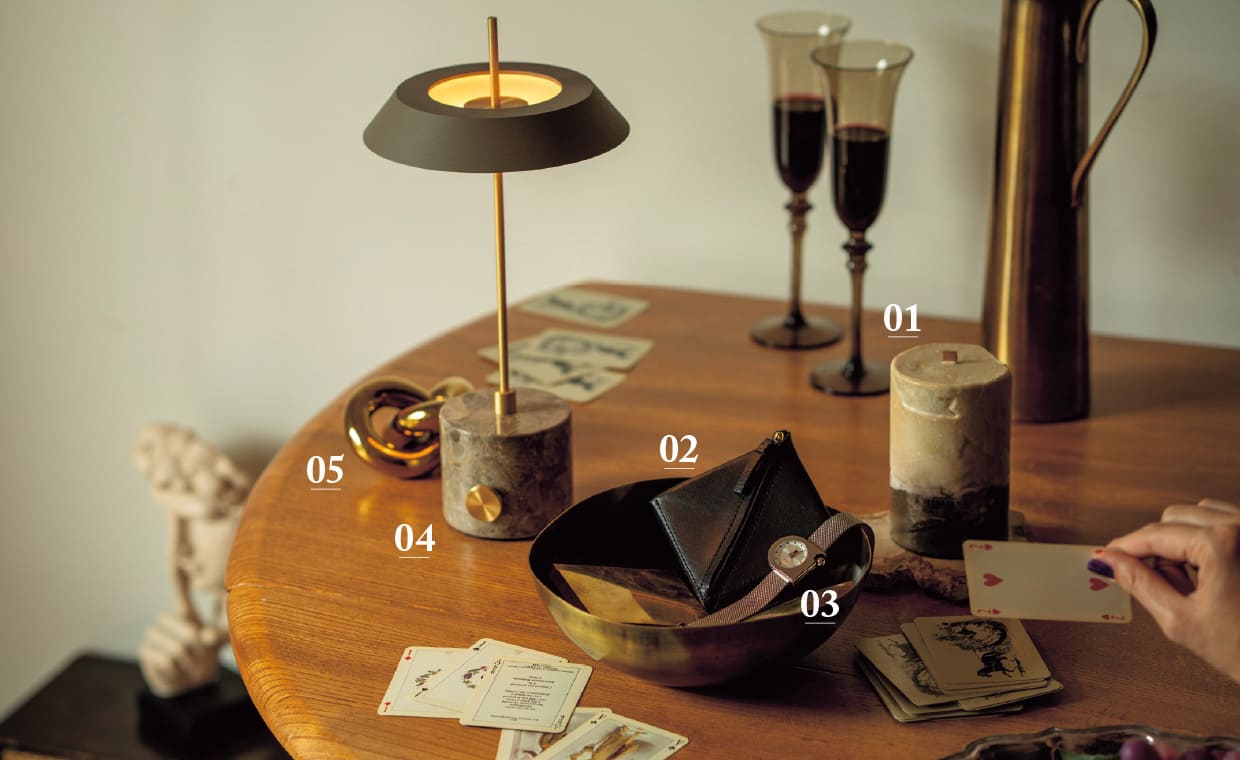 解けることのない“エタニティ(永遠)の結び目”をモチーフにしたオブジェ。しなやかな曲線美が空間をアーティスティックに彩る。Knot Table Light Gold 9,350円(クーイーデザイン)/5F ARTWORK STUDIO KOBE(アートワークスタジオ コウベ)