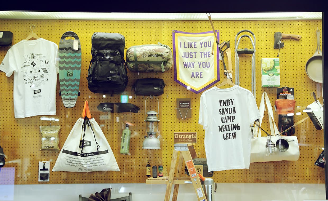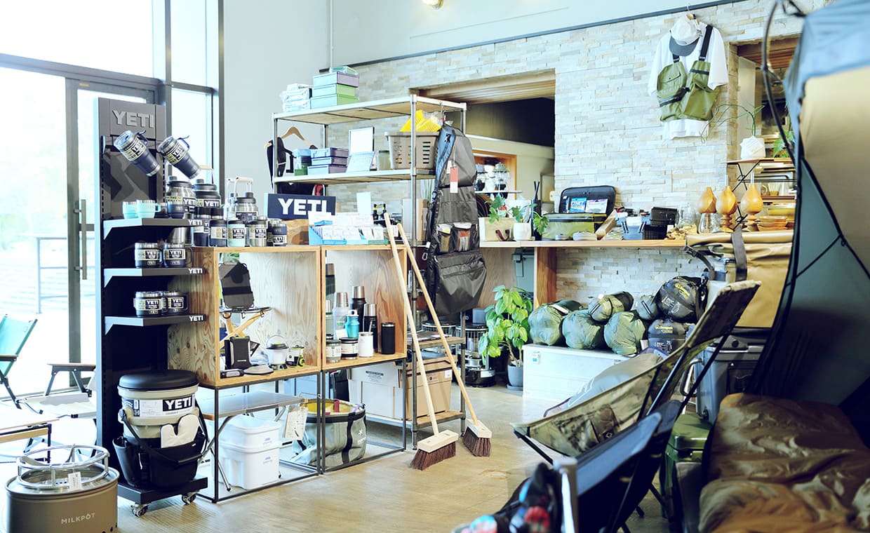 オリジナルのバッグブランド・AS2OVを中心に、高感度なアウトドアギアやアパレルなどを取りそろえ、「いい塩梅なライフスタイル」を提案するセレクトショップ。同店唯一の体験型の店舗として、地元食材で作るキャンプ飯を味わえるカフェも併設。手ぶらBBQ、千丈寺湖でのSUP体験、レンタルバギーでの湖畔ランなど、体験を通してアイテムが持つ魅力を実際に味わうことも。