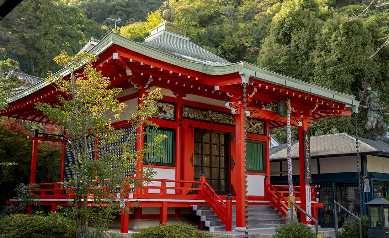 「聖天さん」の愛称で親しまれる息災増益の天尊、大聖歓喜天を祭る。かつてお寺があった山科より移築された御堂で、境内で唯一、きらびやかな朱色をまとい異彩を放つ。